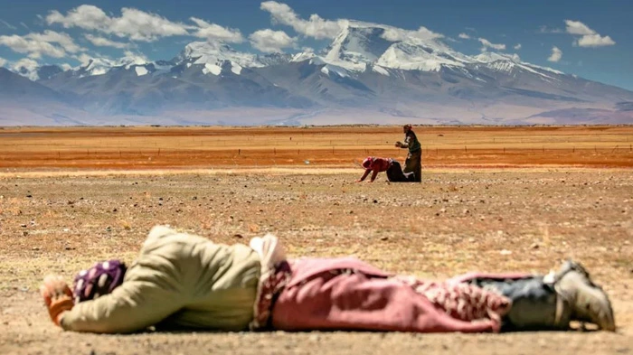 Many Tibetans (many Christians pilgrims too) will travel for hundreds of miles, prostrating with each step …