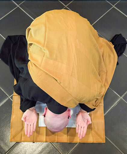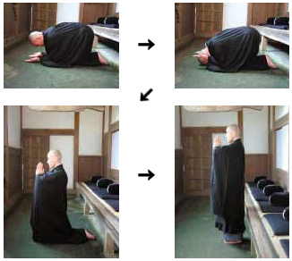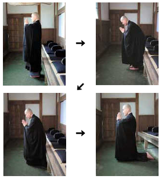 If there is some physical or personal reason not to prostrate, a simple deep standing Gassho can be substituted. For those who must be in bed, a sincere hand gesture or wink can hold all the sincere heart of a full bow if the heart means it so. All that matters is that there is present the sincerity and the humility of the prostration.